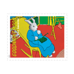 The stamp pane features eight details from the timeless picture book, including: the young bunny tucked into bed; the painting of three